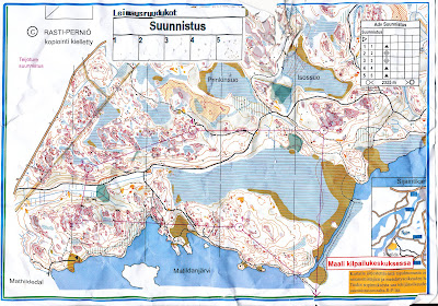 Etukäteisspekulaation mukaan kisan kompastuskivi oli meillä minun pyöräilyvauhtini, ACAlla suunnistettavat kohdat ja P&K:lla ei kumpikaan edellisistä. Omilla käpälilläni ei myöskään juostaisi suurta eroa P&K:een, joten oli luotettava tuuriin ja kohtaloon. Näissä kisoissa kun ei koskaan tiedä, mitä tapahtuu. Suunnistusvirheiden lisäksi voi tunaroida questit, puhkoa renkaansa, loukata jalkansa, hukata emitin/kompassin, unohtaa pelastusliivit tai kypärän vaihtoon ja niin edelleen. No, ACAa alettiin pelata pois ensimmäisellä legillä, kun he tulivat meitä vastaan 2 - 3 välillä. Vaikka kyseessä olikin eri reitinvalinta, olimme ottaneet eron kiinni ja teimme samalla muutaman minuutin eron. Mutta Paakkasesta&Kaartisesta ei meinannut päästä millään eroon! Melkein jo hykertelimme tyytyväisyyttämme lähetyessämme nelosrastia, sillä takana ei ollut näkynyt tuolla välillä enää ketään. Mutta niin vain kettu-Kaartinen oli kaarrellutkin suon oikeaa reunaa, tornien kautta, ja leimasivat ällistykseksemme samaan aikaan. Damn. Hyvä uutinen tosin oli se, että he eivät olleet nähneet ACAa, joten pelättyä beesiletkaa ei oltu saatu aikaiseksi.
